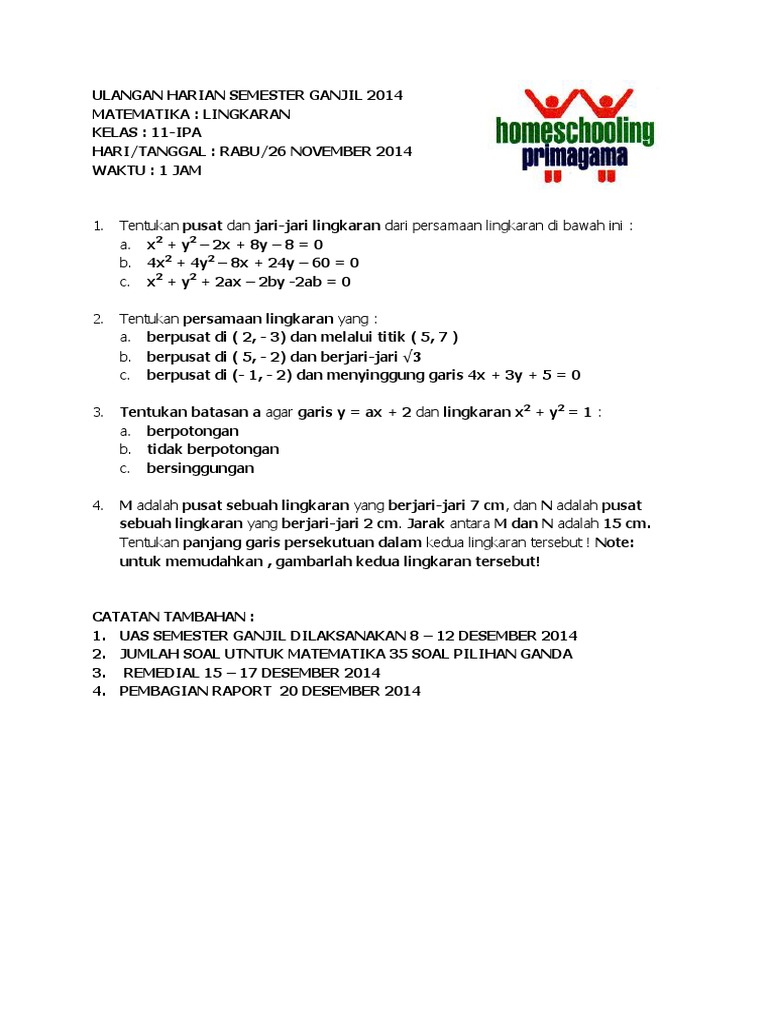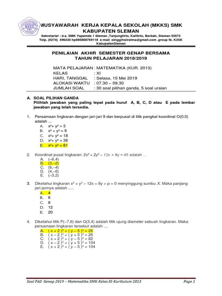 for "Soal Pilihan Ganda Persamaan Lingkaran - Kisi Kisi Soal Matemtaika Peminatan Kelas Xi / Berilah tanda silang x didepan huruf ab c atau d didepan jawaban yang."