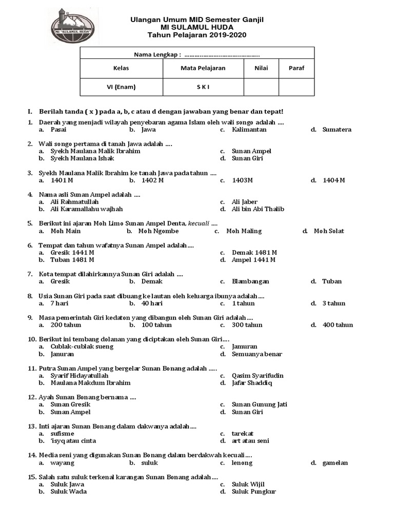 Unduh Contoh Soal Pas Ski Mi Kelas 6 Semester 1 Ganjil Sesuai Kma 183 from 1.bp.blogspot.com Contoh soal mid semester ski. Halo sobat carasunda.com, senang rasanya saya bisa berbagi informasi kembali dengan anda. Berikut ini adalah contoh latihan soal pts / uts pjok kelas 6 semester 2 terbaru tahun ajaran 2019/2020. Soal uts tematik kelas 2 tema 1 hidup rukun kurikulum 2013. Soal pas bisa anda gunaka sebagai referensi dalam belajar untuk mempersiapkan diri dalam menghadapi pas kelas 6 tema 6 s/d 9 semester 2. Mata pelajaran yang termasuk ke dalam salah satu pilihan dari muatan lokal yang diselenggarakan di beberapa sekolah. Bagi bapak dan ibu guru yang saat ini mengajar di jenjang sd/mi tepatnya di kelas 6 dan sedang mengajar mata pelajaran ski maka kiranya artikel ini akan dapat bermanfaat bagi anda terutama dalam melengkapi administrasi. Soal uts pts pkn kelas 6 semester 2 dan kunci jawabandengan adanya latihan soal pkn kelas 6 semester 2 ini diharapkan sahabat buku paket dapat mengerjakan.
