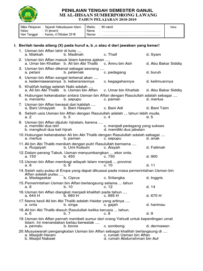 Soal uts tematik kelas 2 tema 1 hidup rukun kurikulum 2013. Soal uas sejarah kelas xii semester 2. Masa paerjanjian hudaibiyah merupakan masa… a. Ali bin abi tholib e. Soal pts pjok ini sudah dilengkapi dengan kunci jawaban.